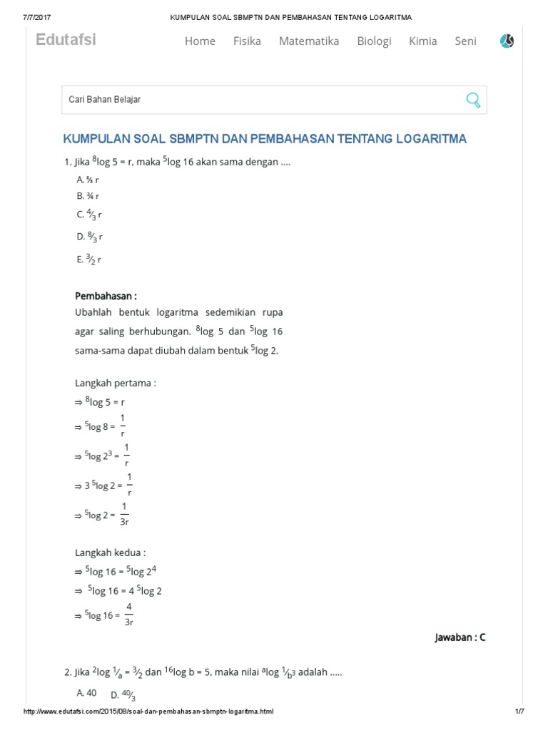 Kumpulan Soal Sbmptn Dan Pembahasan Tentang Logaritma