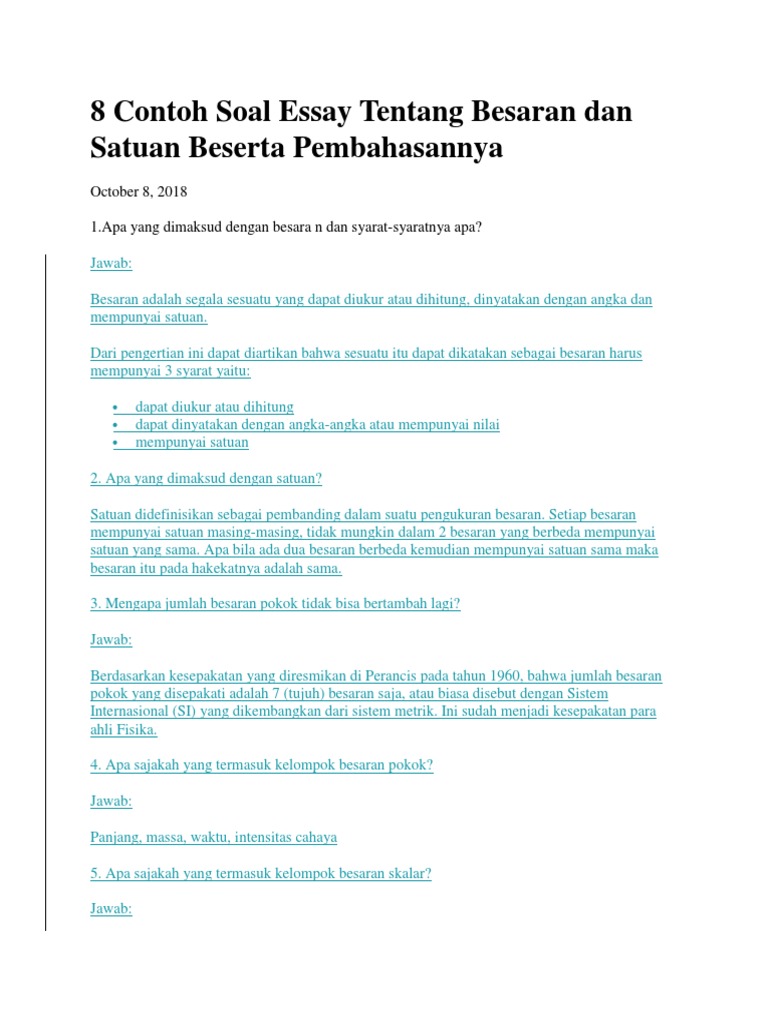 8 Contoh Soal Essay Tentang Besaran Dan Satuan Beserta Pembahasannya